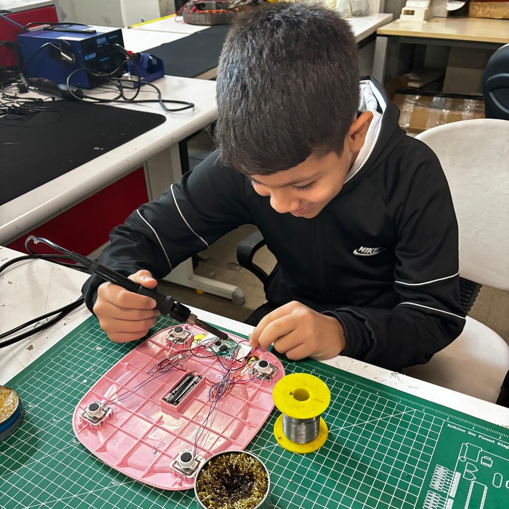 Çocuklar, Makey Makey ve oyun hamuru gibi eğlenceli malzemelerle kendi devrelerini kurarak bilgisayarda oyunlar oynar; çocuk dostu robotlarla tanışarak aynı anda robotların nasıl çalıştığını deneyimlerken, temel elektronik ve kodlama kavramlarını keşfederler.